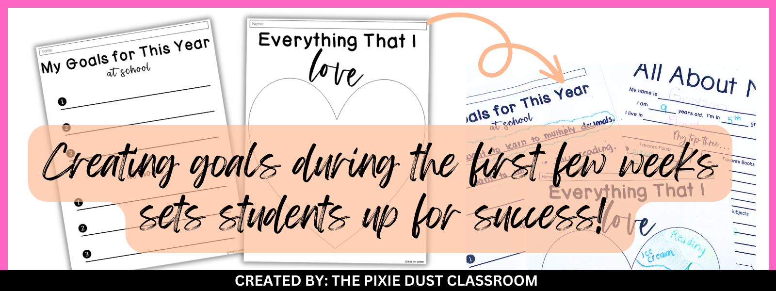 2. Set goals – having students set goals during the first week of school is a great way to start the year off on the right foot. Students immediately get the impression that in this classroom, we reach for the stars, we work hard, and we celebrate our victories (both big and small). I like to have students create academic goals after brainstorming. Check out these goals sheets!